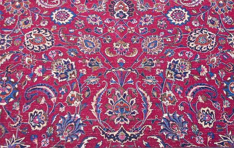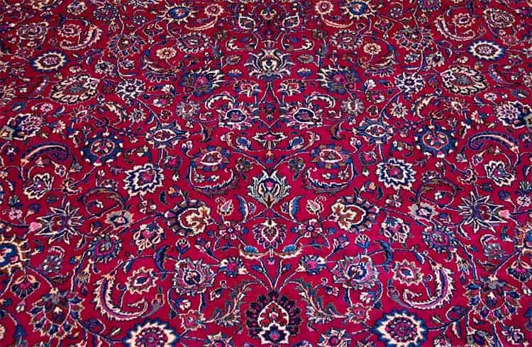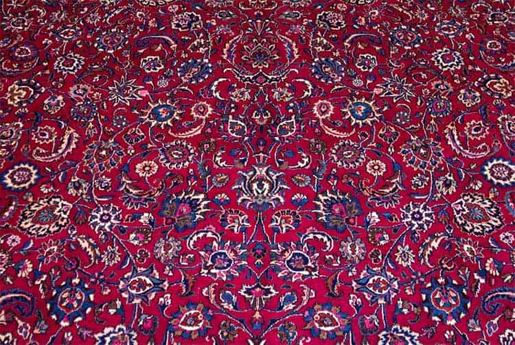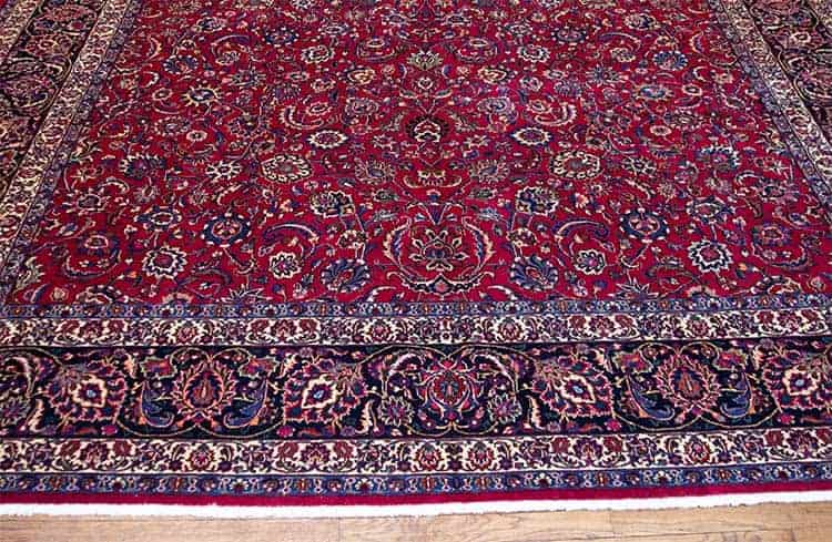 Our featured 10×12 area rug is a stunning, handmade Persian Mashad rug, celebrated for its allover design that omits a central medallion. Rugs with no medallion are particularly sought after for their versatility in design, allowing them to be centered around key focal points within a room, such as a fireplace or a chandelier. This characteristic makes them ideal for creating a harmonious atmosphere, especially in larger or more open spaces where balance is essential.