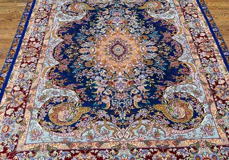 Silk Persian rugs are not just floor coverings; they are genuine symbols of luxury, sophistication, and intricate artistry. These exquisite pieces are crafted with meticulous care by skilled artisans who have devoted their lives to the intricate weaving process, driven by a profound passion for their craft. Among our exceptional collection of silk Persian rugs, we proudly feature a stunning handmade royal blue color rug, skillfully created by talented artisans from Tabriz, a region renowned for its rich rug weaving tradition.