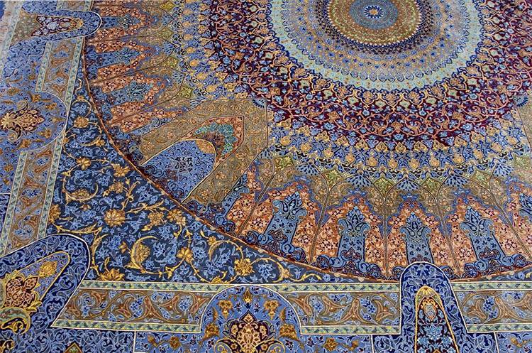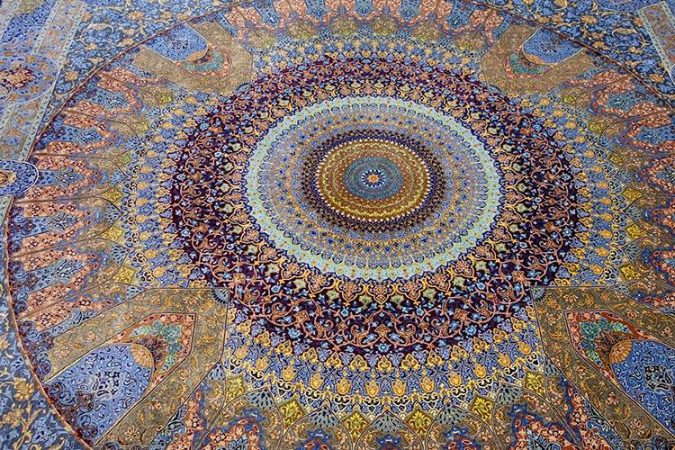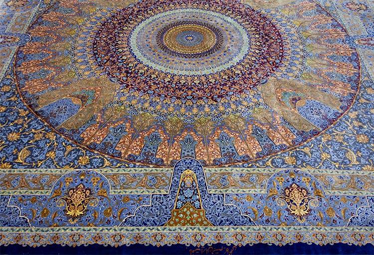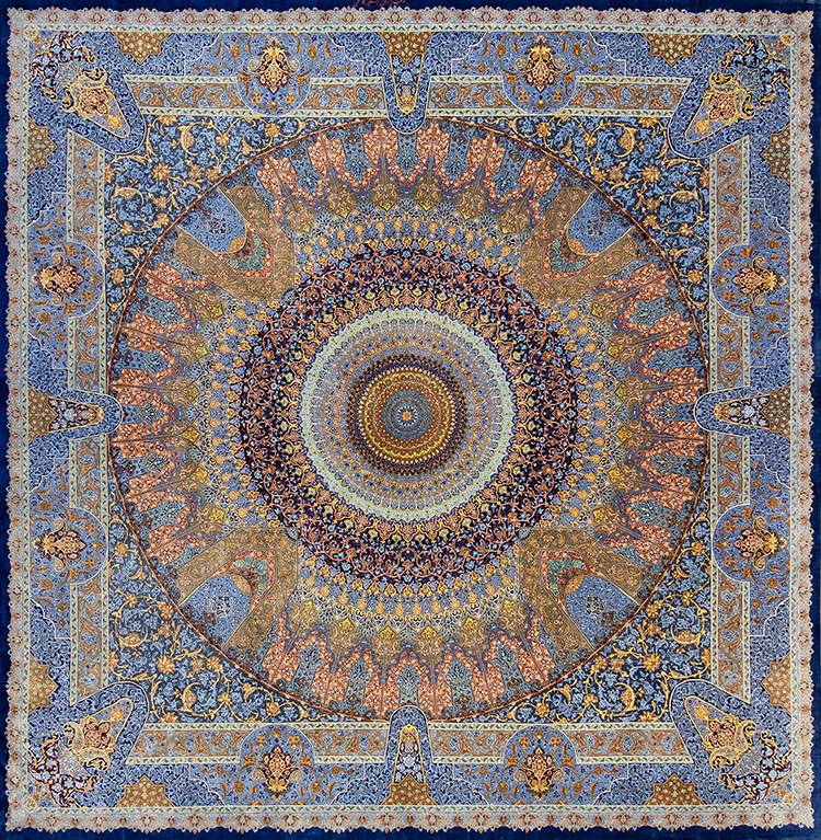 Silk fibers create a luminous surface that reflects light beautifully. The smooth silk pile reveals extraordinary detail and artistic precision.