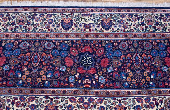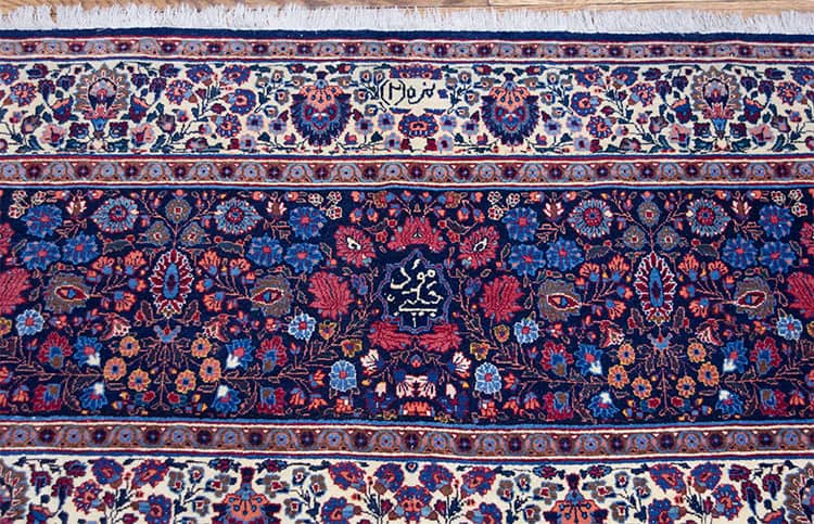 Adding to its historical and cultural value, this rug bears an inscription noting that it was woven in Workshop No. 2 under the skilled hand of the weaver Jabalbi. Such documentation is rare and enhances the provenance and authenticity of the piece, elevating it from a decorative object to a work of collectible art.
