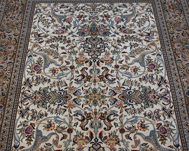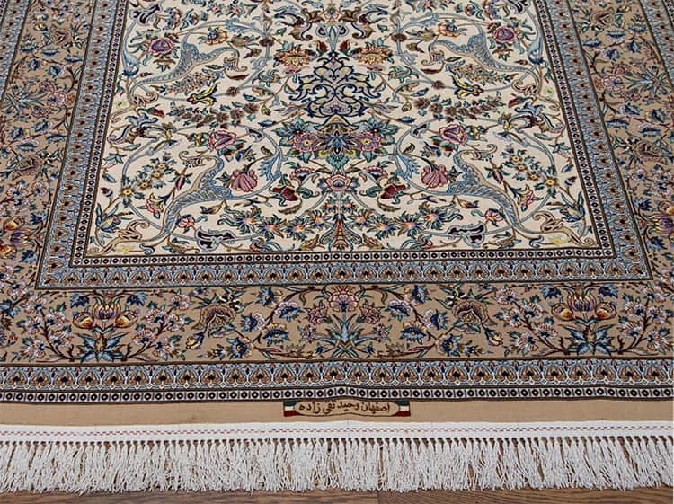 Its traditional style seamlessly complements a wide range of furniture, effortlessly blending with different design aesthetics to create a harmonious and inviting atmosphere. Add a touch of timeless beauty to your home with the Beige Rug, a testament to exceptional craftsmanship and exquisite design. Whether as a statement piece or as part of a carefully curated decor, this Persian Isfahan rug promises to enrich your living space with its unparalleled beauty and charm. The actual rug size measures 5×7.6.