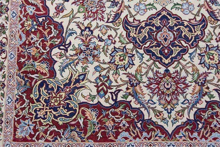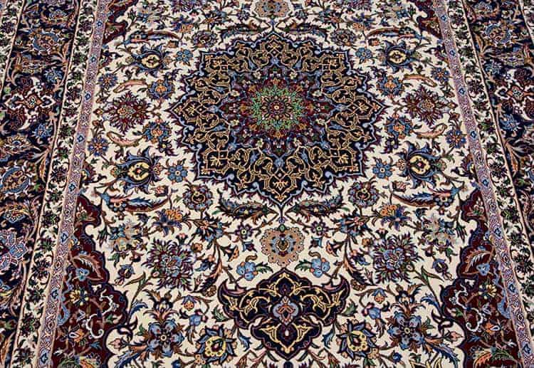 This distinguished Persian Isfahan rug stands out, mainly due to its remarkable construction and meticulous detail. Handcrafted to perfection, it boasts an impressive 460 knots per square inch, ranking it among the highest quality rugs originating from Iran. Rugs with such intricate knotting are highly revered, and the superior KPSI (knots per square inch) rating enhances the aesthetic appeal, significantly adding to the rug’s overall value and intricacy. High knot counts are a critical factor in determining a rug’s quality, with more than 300 knots per square inch typically associated with superior craftsmanship.