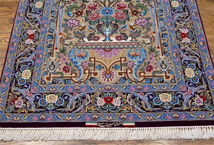 Versatility is one of the standout features of this magnificent piece. It is suitable for a variety of uses, whether you wish to display it as a stunning wall hanging or place it on the floor as a captivating centerpiece. No matter how it is utilized, this purple Persian Isfahan rug will undoubtedly create an illusion of space, class, and artistry, making it a treasured addition to your decor. Indulge in the luxury and refinement that this unique purple Persian Isfahan rug offers.