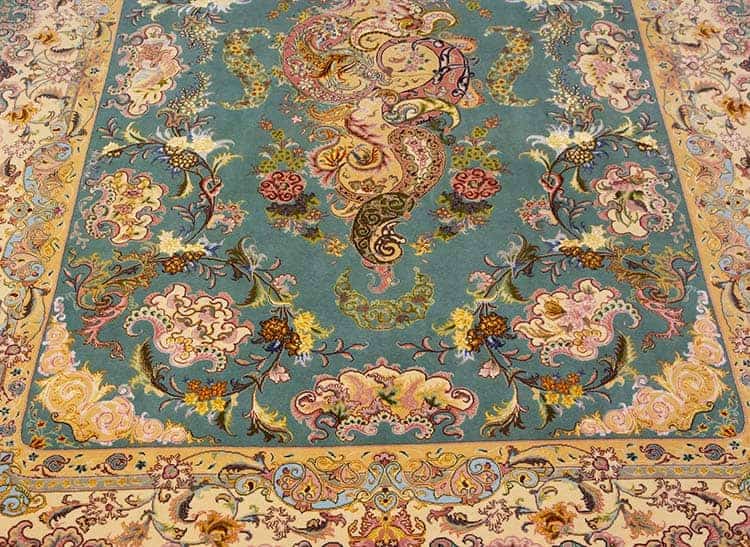 Introducing a stunning handmade Persian Tabriz rug, an exquisite work of art that showcases the extraordinary craftsmanship and unique design sensibilities of one of the most renowned master weavers from Tabriz, Iran. Shir Far has built a celebrated reputation for creating rugs that not only exemplify traditional Persian weaving techniques but also feature innovative design elements and exceptional color combinations that elevate any interior space.