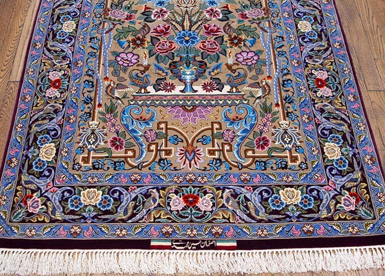 What truly sets this rug apart is its masterful color palette, which includes hues of purple, rose, green, red, jasmine, brown, blue, gray, navy blue, beige, and gold. The harmonious blend of these colors brings out the rug’s exquisite design and adds a sense of enchantment to any room.