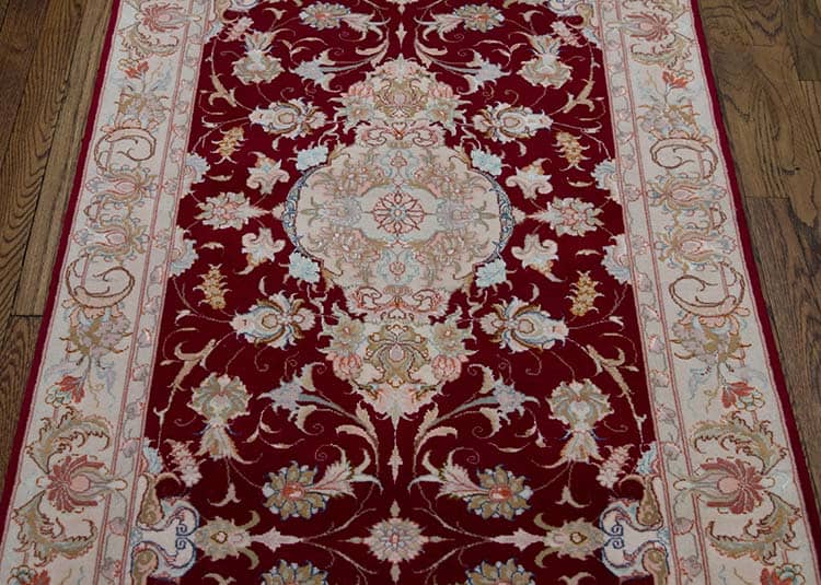 What truly sets this rug apart is its traditional Tabriz design, skillfully crafted with three distinct medallions ingeniously surrounded by intricate leaf and flower motifs. These details add a layer of sophistication and artistry, making it not just a stair runner but a piece of art that tells a story.